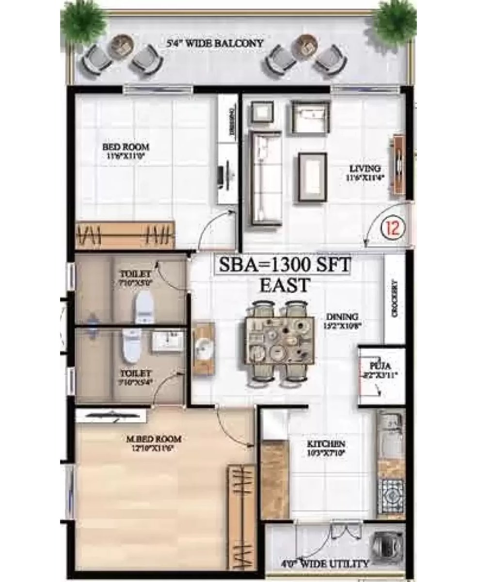 | 4 BHK + Servant | 3030 Sq.Ft. |