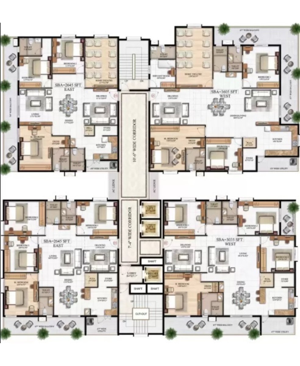 | 4 BHK + Servant | 3030 Sq.Ft. |